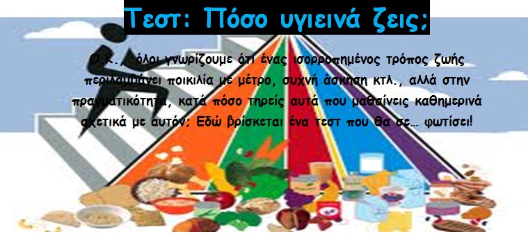 Δεν τα πήγες και τόσο καλά! «Υγιεινή διατροφή και άσκηση; Δηλαδή;» Οι όροι αυτοί λίγο πολύ απουσιάζουν από την καθημερινότητά σου! Ίσως θα έπρεπε να φροντίζεις λίγο περισσότερο την υγεία σου, για το δικό σου καλό! Πάρε μια ιδέα από το σχετικό μας άρθρο!